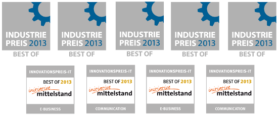 In den vergangenen Jahren wurden unsere Softwarelösungen bereits mehrfach ausgezeichnet. Auch in diesem Jahr haben wir unsere Produkte für den Innovationspreis-IT sowie für den Industriepreis 2013 eingereicht. Das Ergebnis: Insgesamt 9 Auszeichnungen mit "BEST OF 2013"