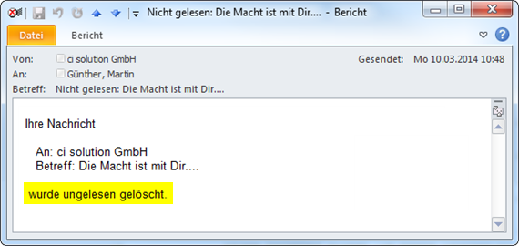 - Der Empfänger hat Ihre E-Mail tatsächlich ungelesen gelöscht. So eine Frechheit... ;-)