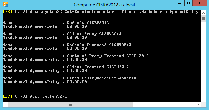 Set-ReceiveConnector "SMTP Application relay" -MaxAcknowledgementDelay 0