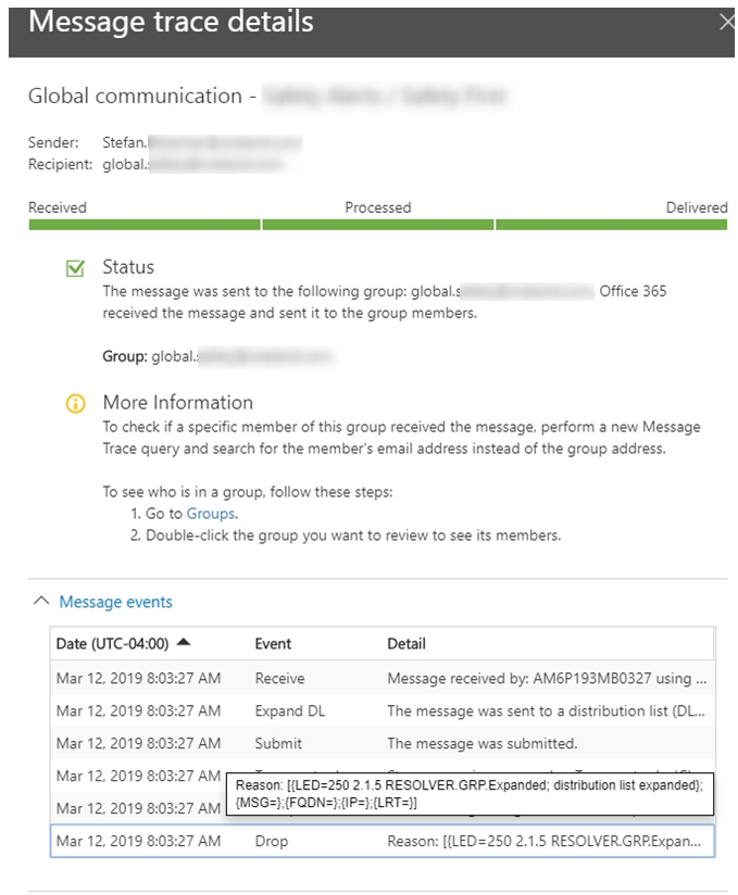Beim Versand einer E-Mail an eine Verteilergruppe löst der Transport Dienst von Office 365 (Exchange) die Verteilergruppe auf und adressiert die E-Mail an alle darin enthaltenen Empfänger. Das klappt noch.